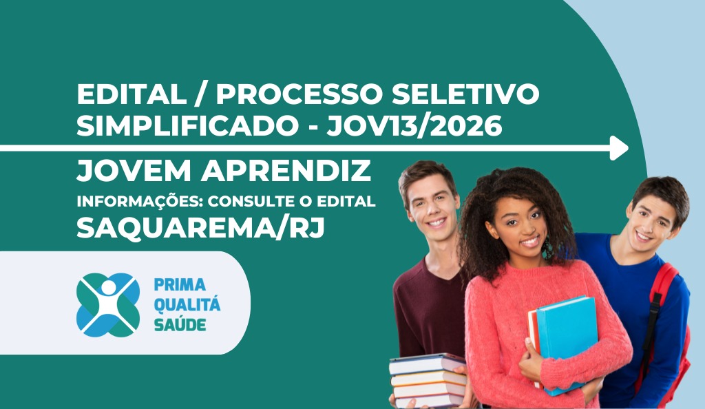 A Organização Social Prima Qualitá Saúde divulga processo seletivo simplificado para Jovem Aprendiz em unidades de saúde gerenciadas pela OS.