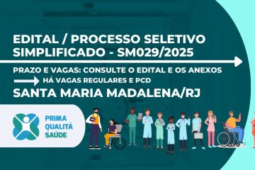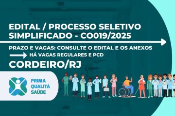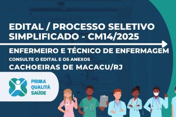 A Organização Social Prima Qualitá Saúde divulga processo seletivo simplificado, em unidades de saúde do município de Cachoeiras de Macacu/RJ. Para participar, o candidato deverá realizar inscrição, cadastrando seu currículo no link indicado no Edital. Confira abaixo, o edital simplificado e todas as informações sobre o processo seletivo. Acreditamos na Ler mais