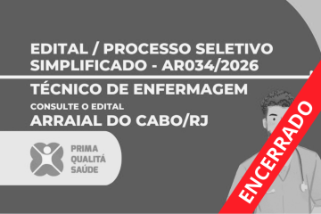 A Organização Social Prima Qualitá Saúde divulga processo seletivo simplificado, em unidades de saúde do município de Arraial do Cabo/RJ. Para participar, o candidato deverá realizar inscrição, cadastrando seu currículo no link indicado no Edital. Confira abaixo, o edital simplificado e todas as informações sobre o processo seletivo. Acreditamos na Ler mais