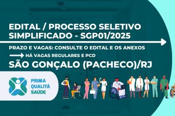 A Organização Social Prima Qualitá Saúde divulga processo seletivo simplificado, para atuação em Pacheco, no município de São Gonçalo/RJ. Para participar, o candidato deverá realizar inscrição, cadastrando seu currículo no link indicado no Edital. Confira abaixo, o edital simplificado e todas as informações sobre o processo seletivo. Acreditamos na inclusão Ler mais
