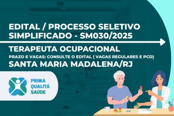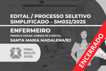 A Organização Social Prima Qualitá Saúde divulga processo seletivo simplificado, em unidades de saúde do município de Santa Maria Madalena/RJ. Para participar, o candidato deverá realizar inscrição, cadastrando seu currículo no link indicado no Edital. Confira abaixo, o edital simplificado e todas as informações sobre o processo seletivo. Acreditamos na Ler mais