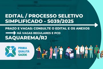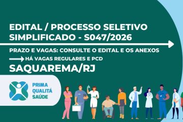 A Organização Social Prima Qualitá Saúde divulga processo seletivo simplificado, em unidades de saúde do município de Saquarema/RJ. Para participar, o candidato deverá realizar inscrição, cadastrando seu currículo no link indicado no Edital. Confira abaixo, o edital simplificado e todas as informações sobre o processo seletivo. Acreditamos na inclusão e Ler mais
