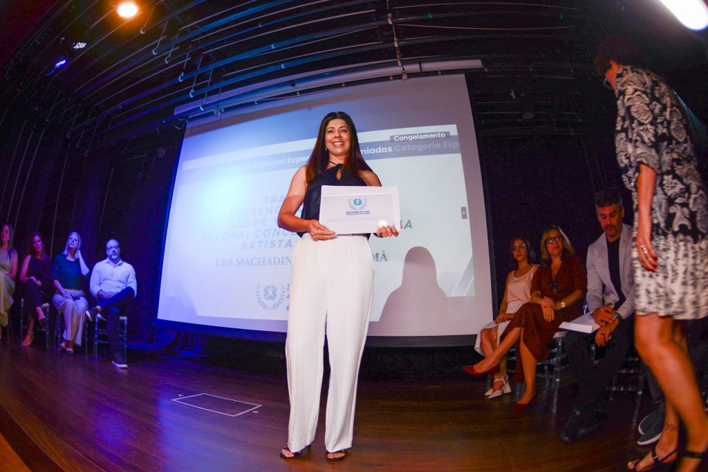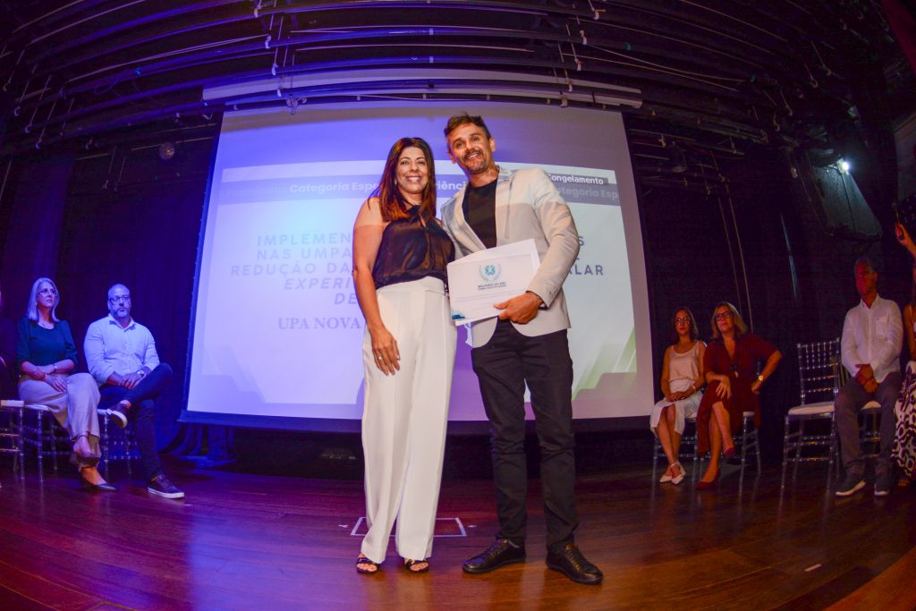 Logo após sua fala, subiu ao palco a coordenadora do Núcleo de Educação Permanente (NEP), Rosemary Cerqueira, que apresentou o Projeto Melhores do Ano — uma iniciativa voltada ao reconhecimento de profissionais que atuam no cuidado diário, que transformam realidades e que escolhem contribuir de forma efetiva para o funcionamento da rede.
