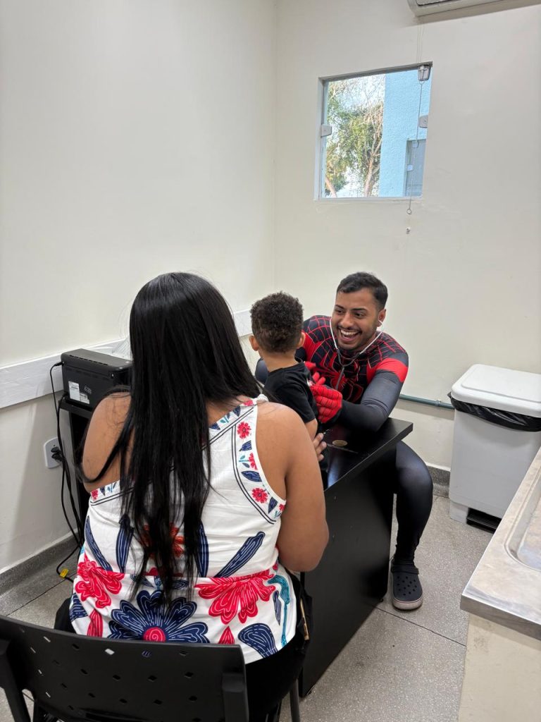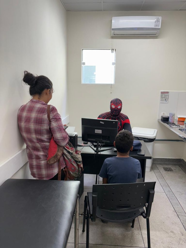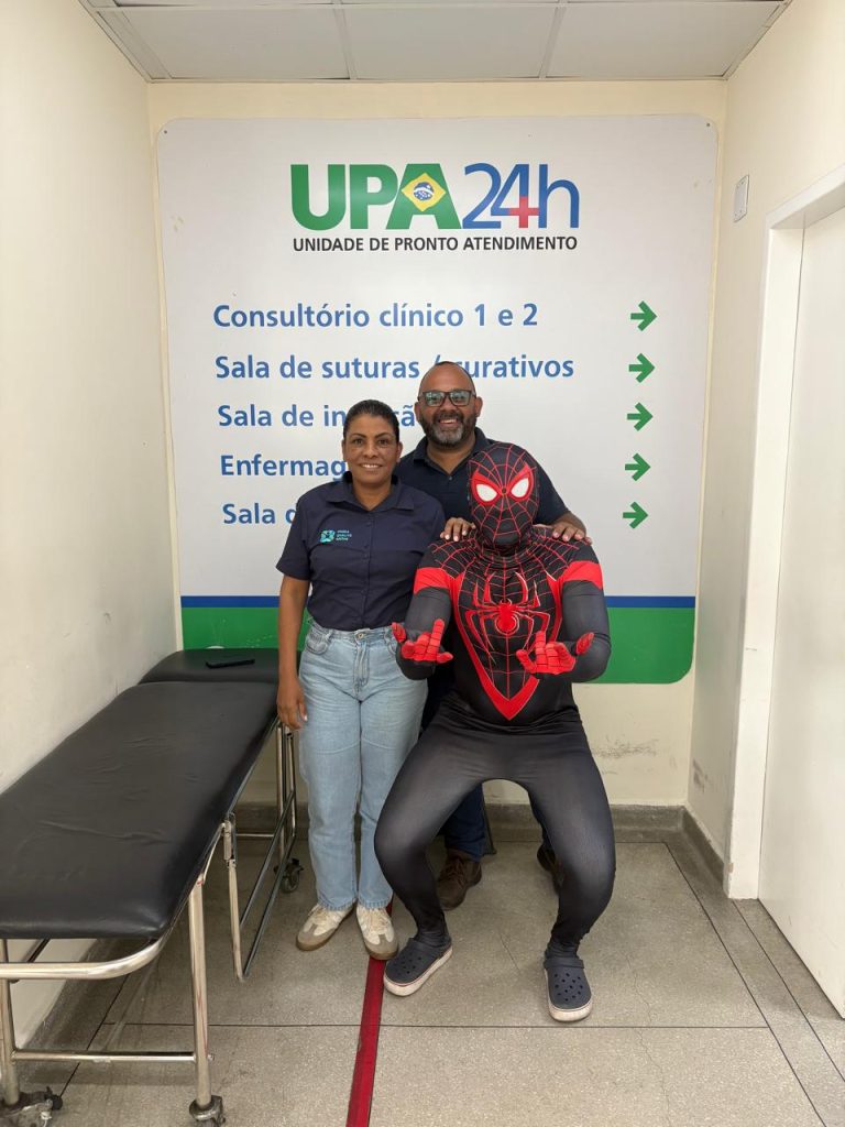 Durante o plantão , o Dr. Gabriel se caracterizou como o Homem-Aranha, proporcionando um atendimento lúdico e inesquecível às crianças atendidas na unidade. O gesto despertou sorrisos, curiosidade e encantamento, transformando a consulta em um momento de alegria e descontração.