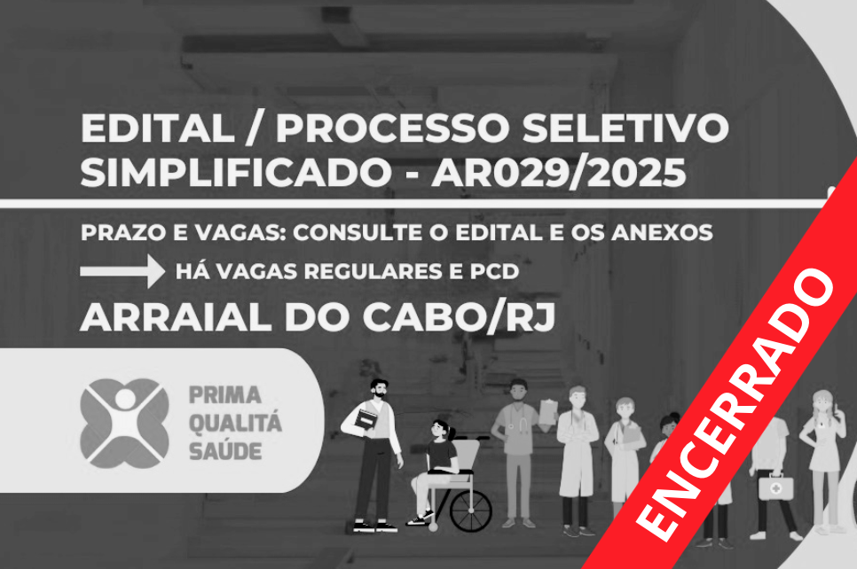 A Organização Social Prima Qualitá Saúde divulga processo seletivo simplificado, em unidades de saúde do município de Arraial do Cabo/RJ.