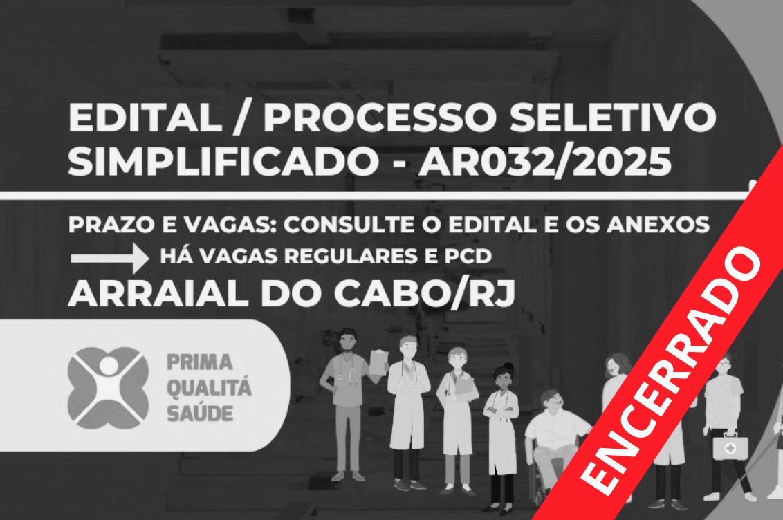 A Organização Social Prima Qualitá Saúde divulga processo seletivo simplificado, em unidades de saúde do município de Arraial do Cabo/RJ.