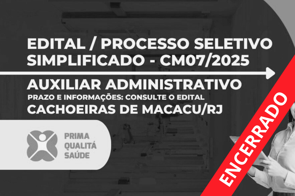 CM07/2025 – EDITAL PROCESSO SELETIVO – CACHOEIRAS DE MACACU – RJ