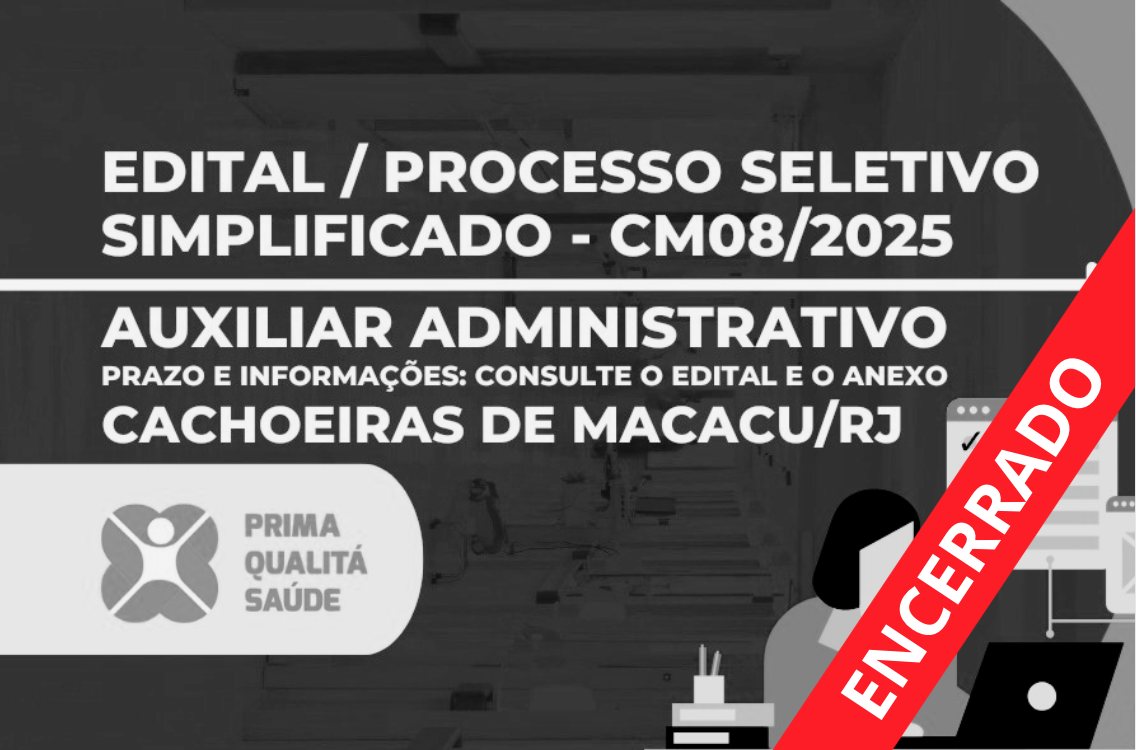 A Organização Social Prima Qualitá Saúde divulga processo seletivo simplificado, em unidades de saúde do município de Cachoeiras de Macacu/RJ.