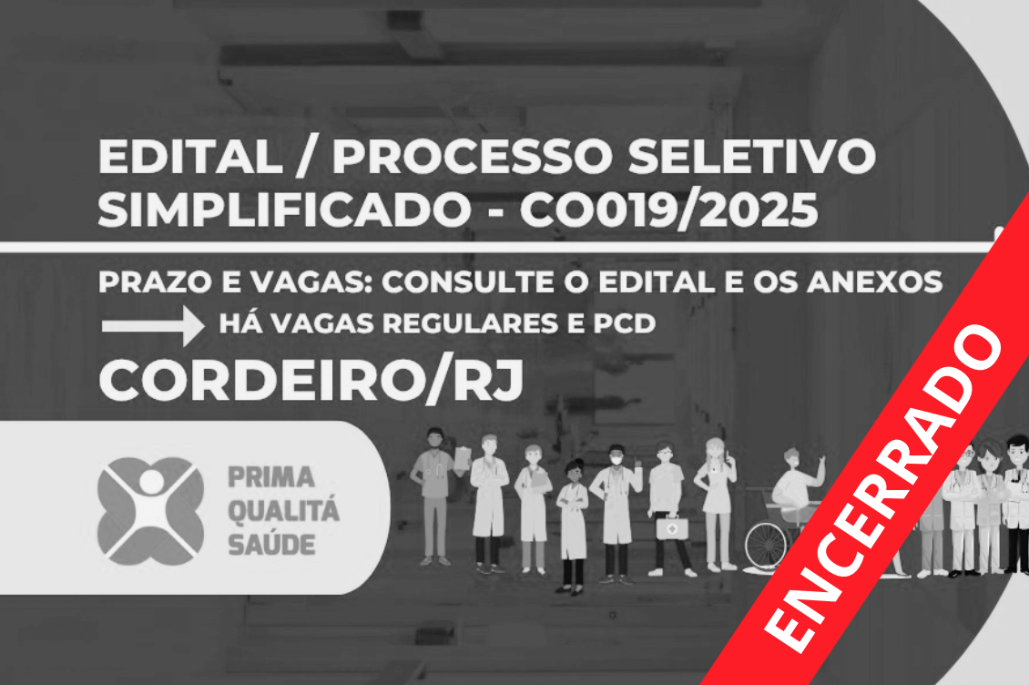 A Organização Social Prima Qualitá Saúde divulga processo seletivo simplificado, em unidades de saúde do município de Cordeiro/RJ.