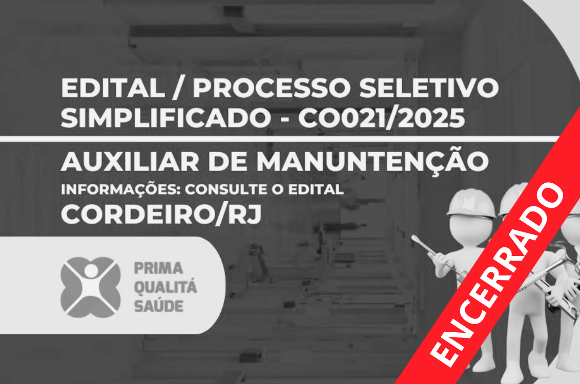 A Organização Social Prima Qualitá Saúde divulga processo seletivo simplificado, em unidades de saúde do município de Cordeiro/RJ.