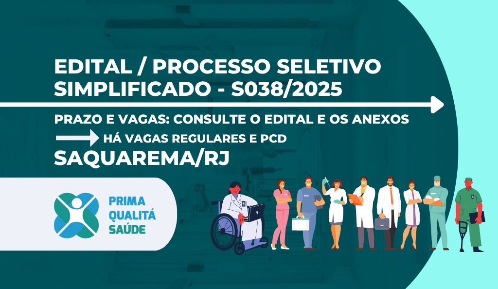 A Organização Social Prima Qualitá Saúde divulga processo seletivo simplificado, em unidades de saúde do município de Saquarema/RJ.