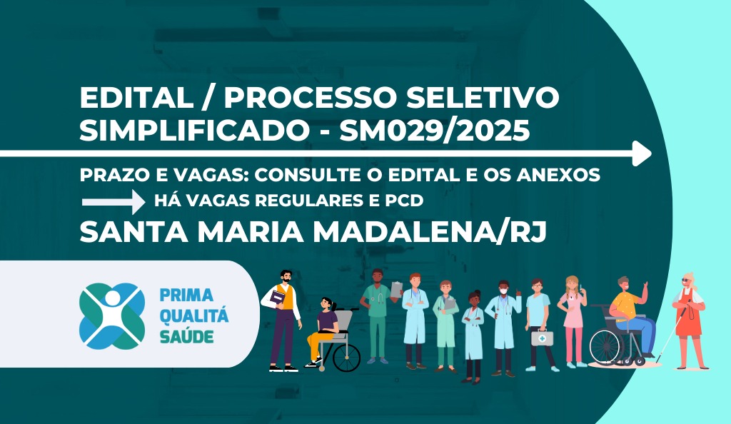 A Organização Social Prima Qualitá Saúde divulga processo seletivo simplificado, em unidades de saúde do município de Santa Maria Madalena/RJ.