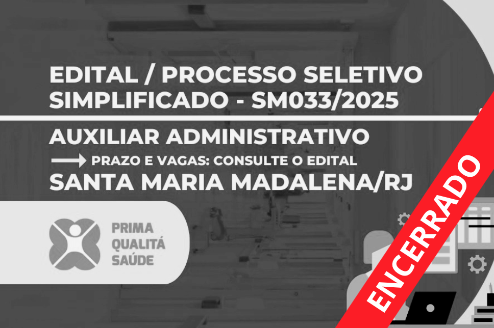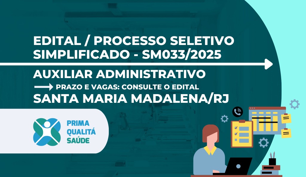 A Organização Social Prima Qualitá Saúde divulga processo seletivo simplificado, em unidades de saúde do município de Santa Maria Madalena/RJ.