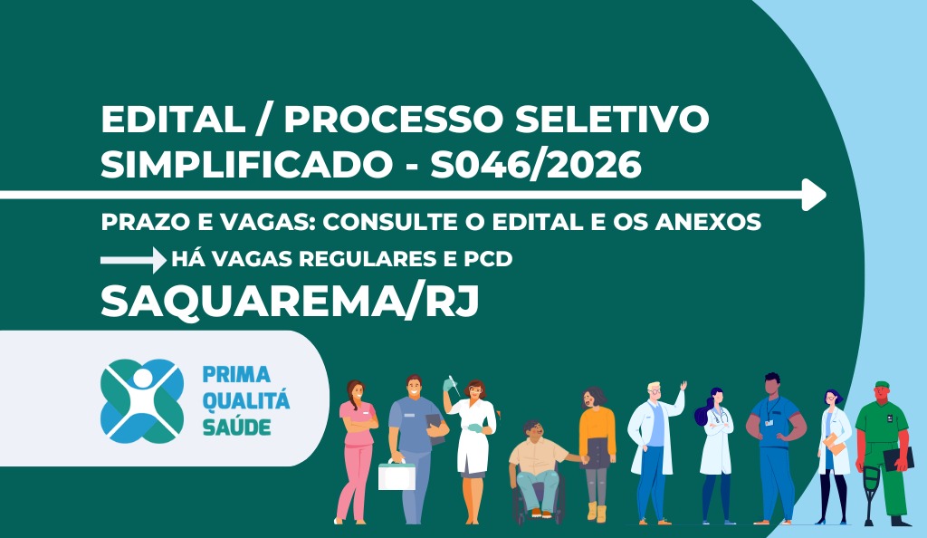 A Organização Social Prima Qualitá Saúde divulga processo seletivo simplificado, em unidades de saúde do município de Saquarema/RJ.